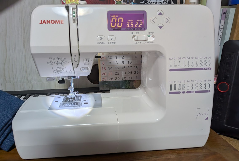 ですが、裾上げや、ちょっとした修理に使うだけで2年ほど寝かせていました。(JANOME JN-51)