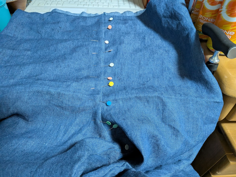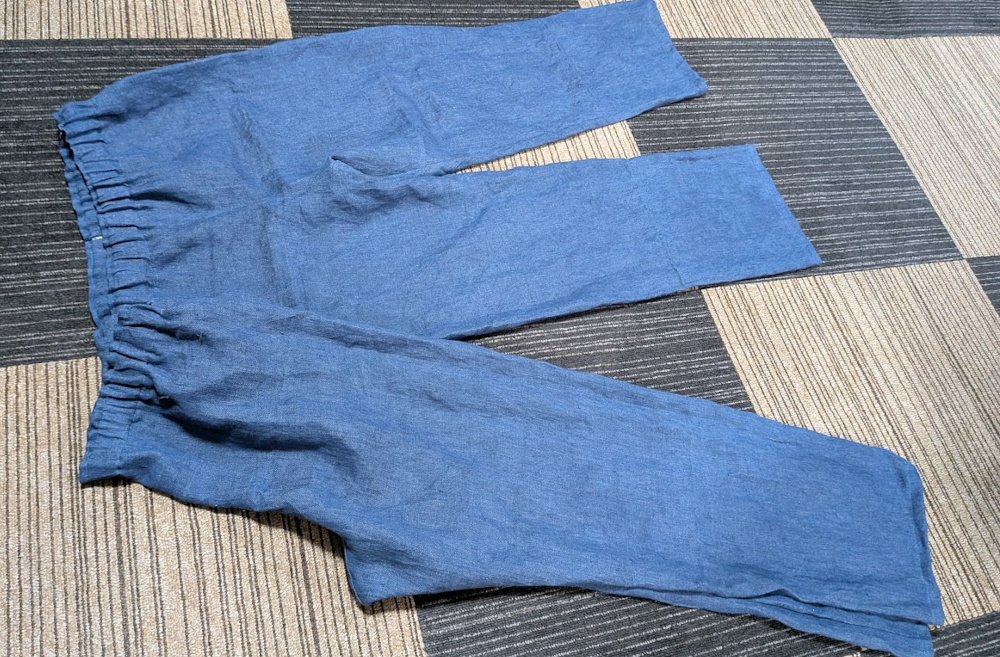 そんなときに病気してしまったので、布をどうしようかと思っていたんですが、今年、暑いからなのか蕁麻疹が出まくってしまって、化繊のズボンが辛かったので、縫ってみることにしました。