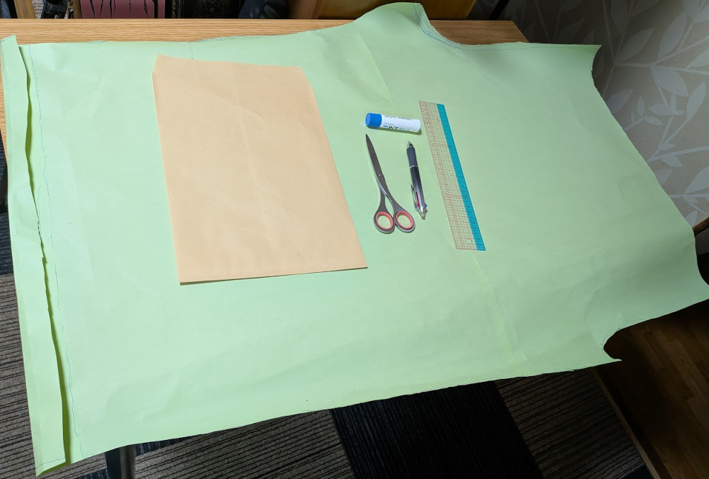 ダイソーで模造紙と、定規が折れてしまってなかったので、ネットで「クロバー(Clover) の方眼定規」を購入して、型紙を作りました。