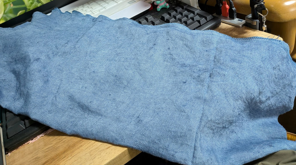 布は確か岡山のジーパンの工房で染められたリネンだったと思います。