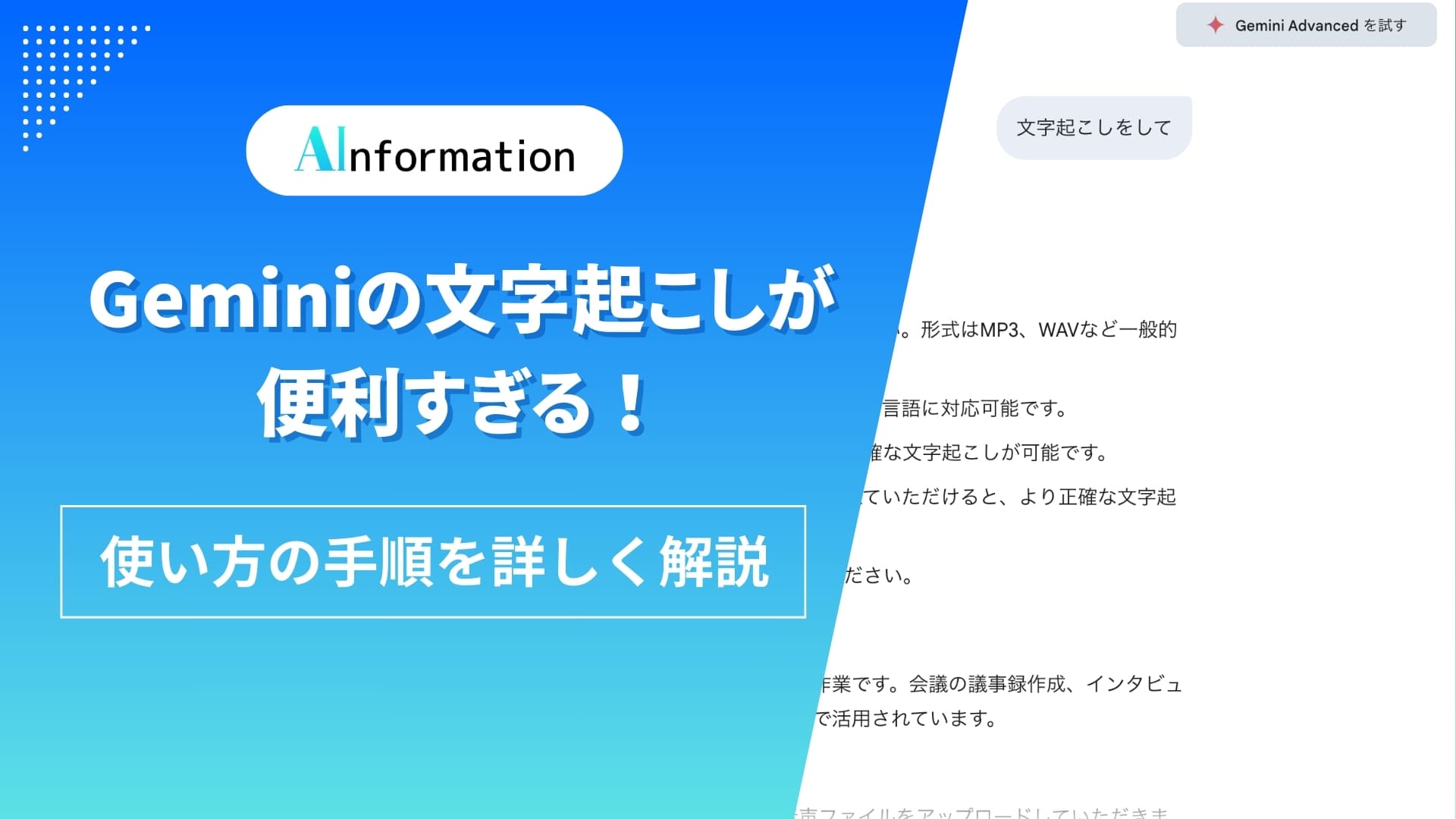 以前の記事で「自動音声認識AI「Whisper」がすごい・音声起こしに使える!」を書きましたが、Googleの開発したGeminiでも文字起こしができるという記事を見つけました。
